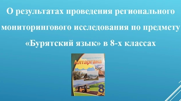 О РЕЗУЛЬТАТАХ ПРОВЕДЕНИЯ РЕГИОНАЛЬНОГО МОНИТОРИНГОВОГО ИССЛЕДОВАНИЯ ПО ПРЕДМЕТУ «БУРЯТСКИЙ ЯЗЫК» В 8-Х КЛАССАХ