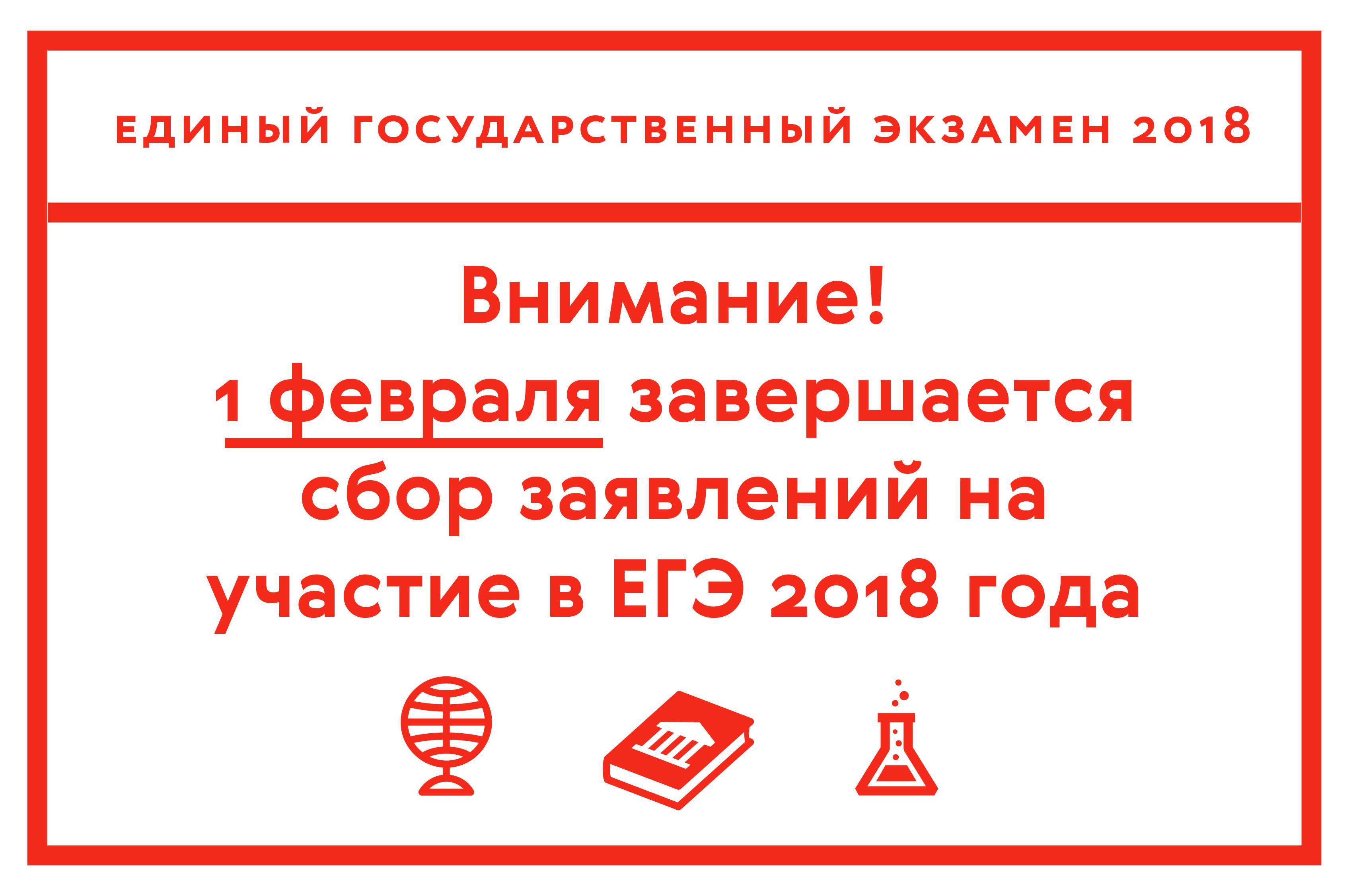 Рособрнадзор сообщает о завершении приема заявлений на участие в ЕГЭ-2018